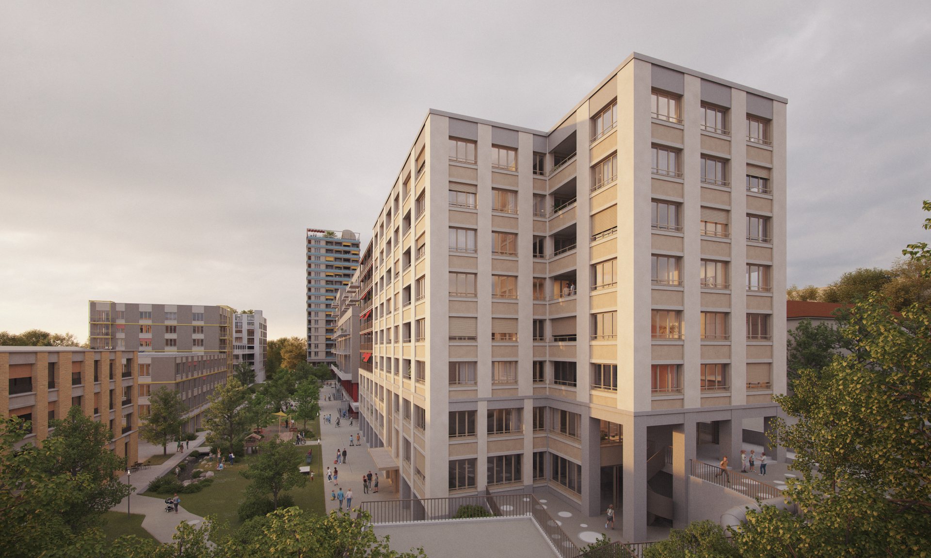 Im neuen Teilquartier Holliger baut die FAMBAU Genossenschaft ein modernes und nachhaltiges Wohn- und Gewerbehaus. Dank einem durchdachten Nutzungsmix mit kleinen Wohnungen für Ein- und Zweipersonenhaushalte sowie grösseren Wohnungen für Familien entsteht im Holligerhof 9 eine lebendige Wohnoase für verschiedene Generationen und Ansprüche.